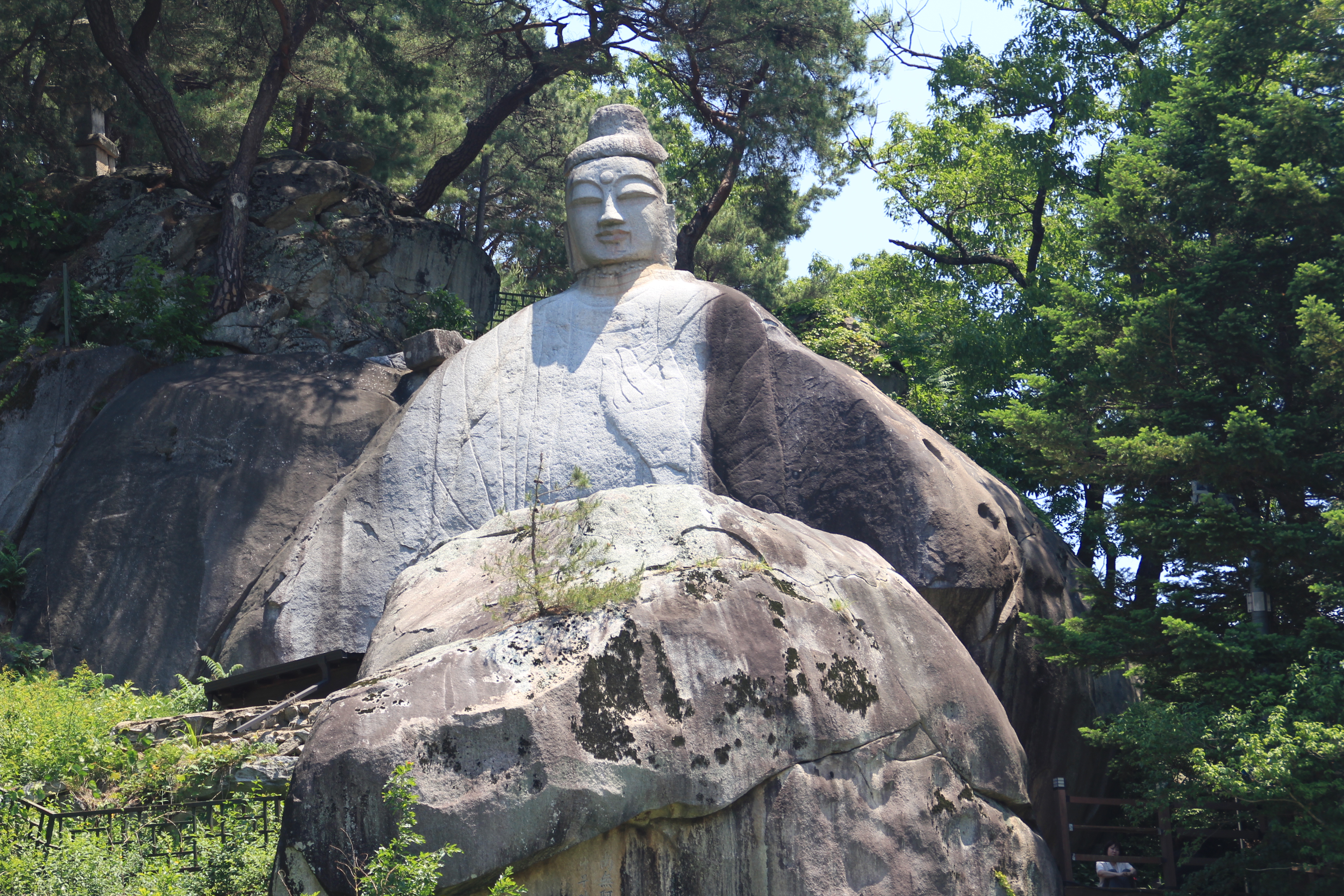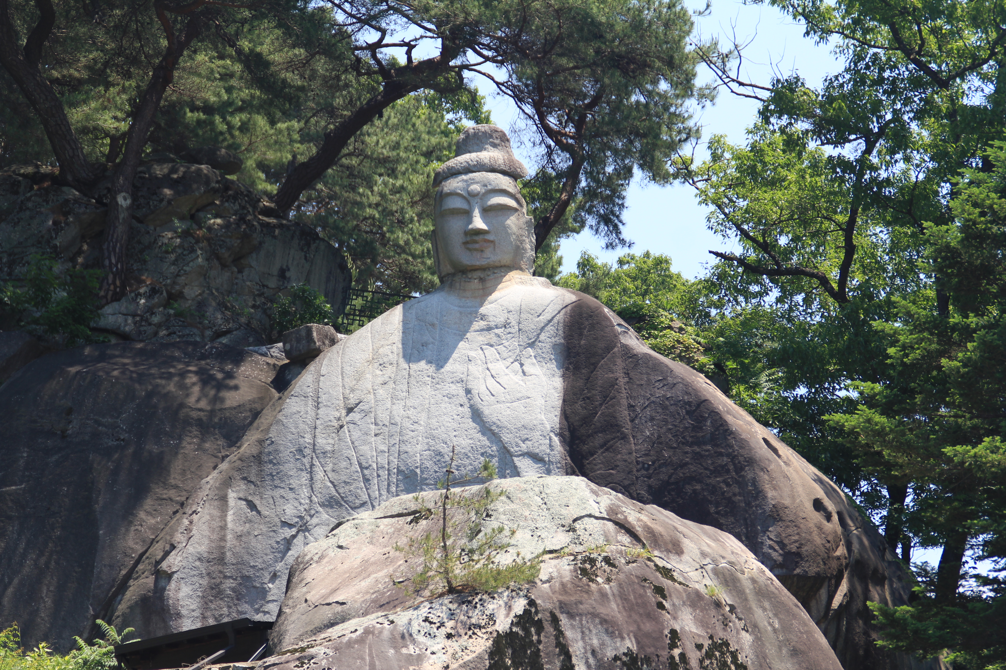 이천동 마애여래입상은 큰 바위에 선으로 몸체를 새기고 그 위로 불두를 올려두는 고려 시대에 성행하던 방식으로 만들어진 높이가 12.38m가 넘는 큰 불상이다.